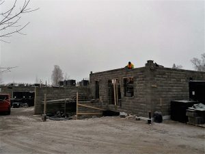 Kotien 1. kerrosten ulkoseinät ovat pystyssä ja sisälle pääsee jo kurkistamaan. Toki tarvitaan vielä myös toinen kerros ja katto, jotta kodit alkavat kunnolla hahmottua. Työmaalla rakennetaan ahkerasti ja arviolta kahden kuukauden kuluttua päästään sisätöihin.